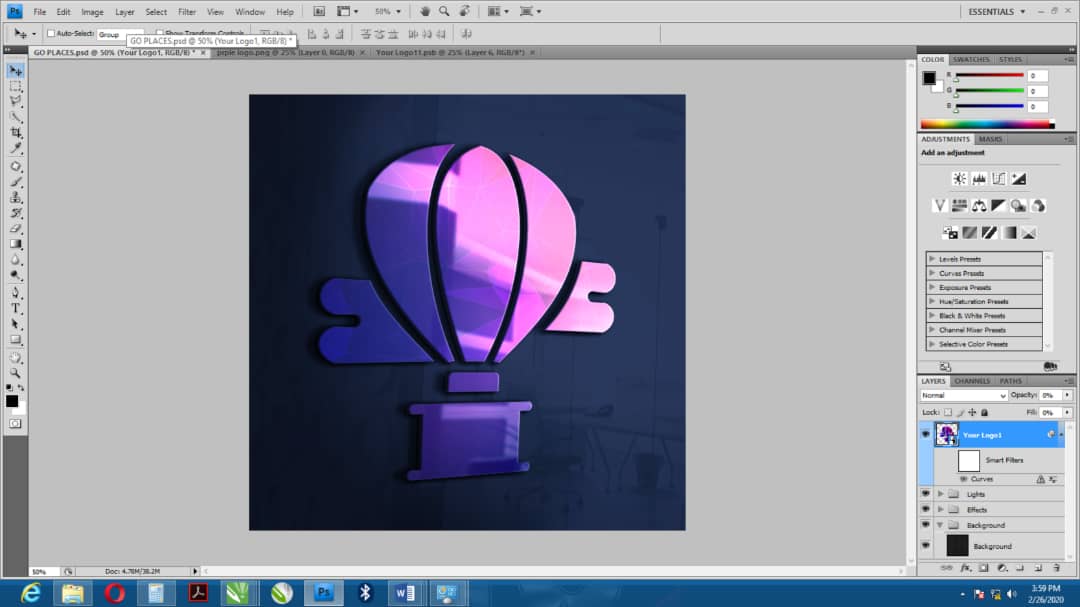The logo was made using a combination of Corel Draw and Photoshop.... Corel Graphic suite was used to do a major part of the design while Adobe Photoshop (PS) was used for the Mockup