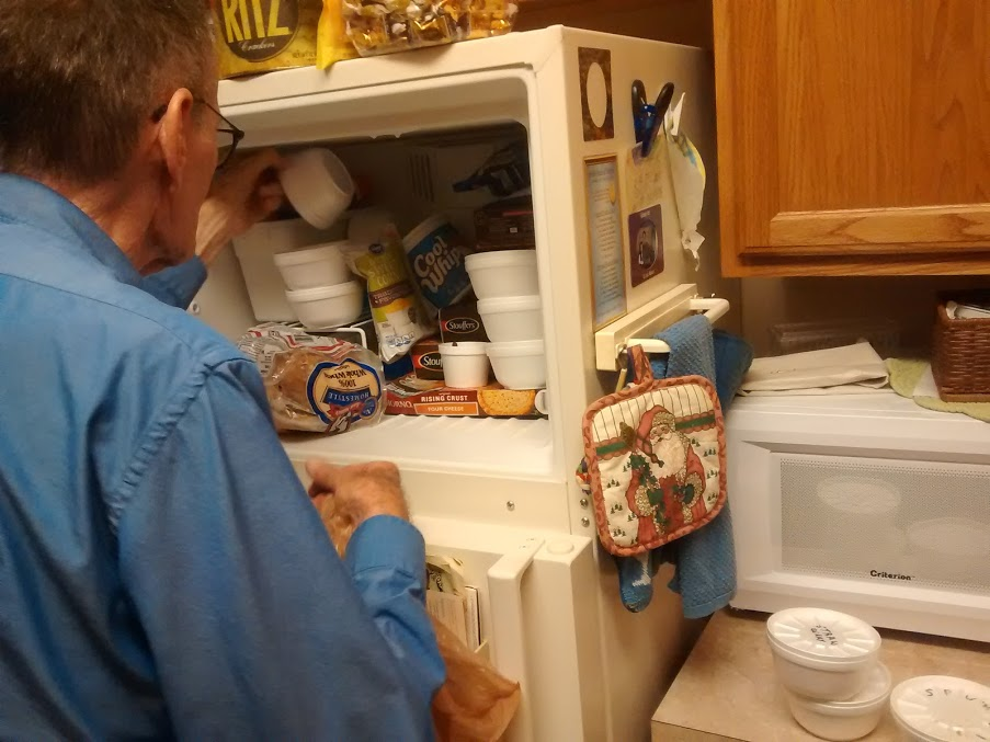 He opened up his freezer and filled a bag with icecream! He brings it home from supper time and saves it for occasions like these!