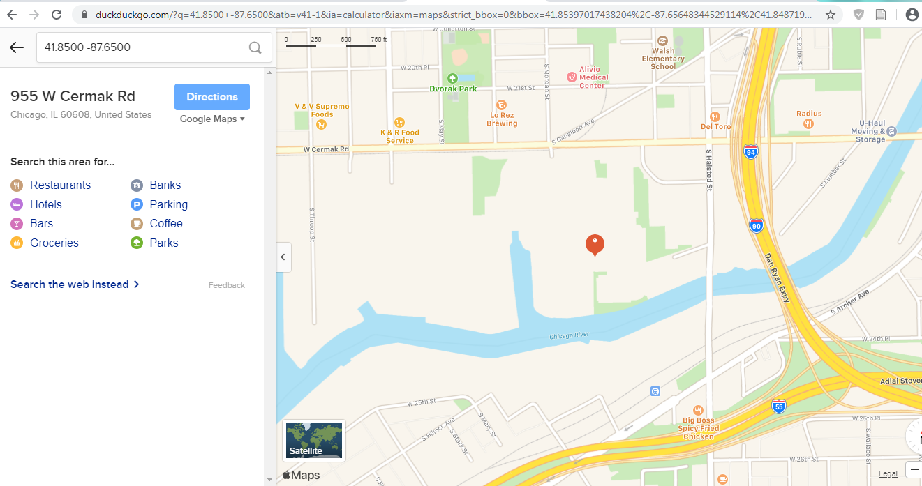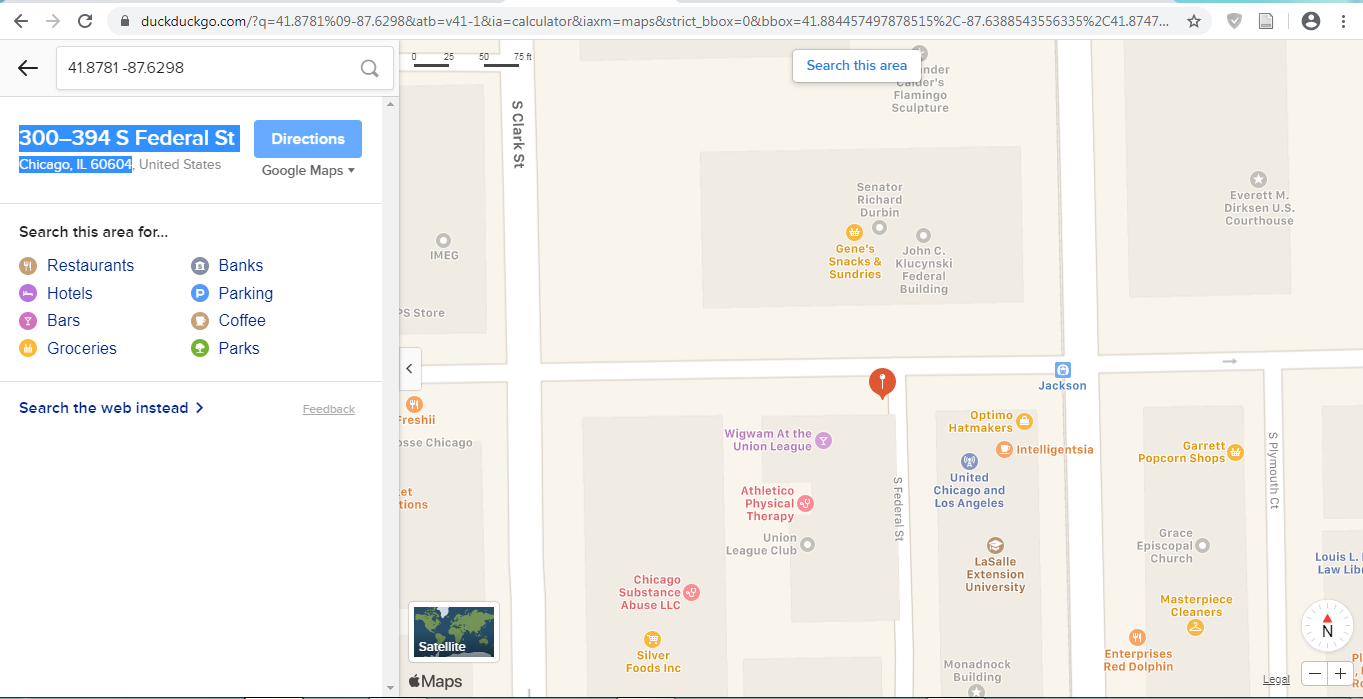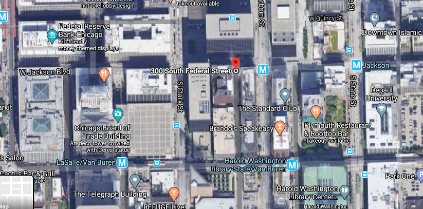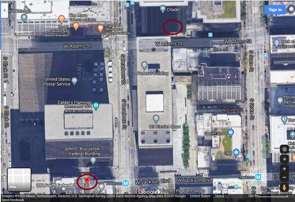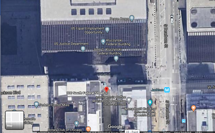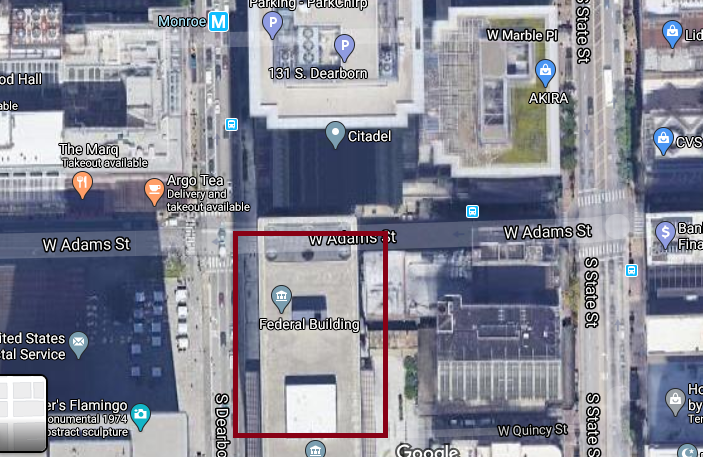 The GPS coordinates go to outside another federal office building housing the DoJ and Senator Richard Durbin's offices.