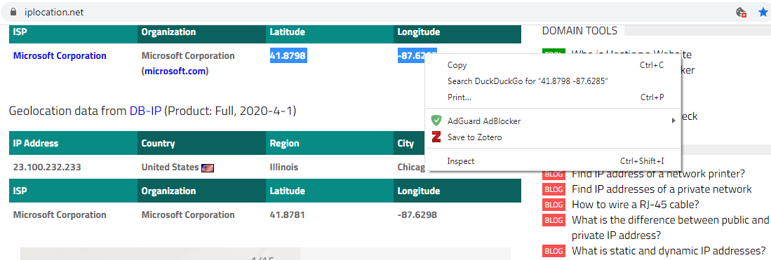 The first IP address goes to a location on Cermak Rd. It's a business called "Child Link" and they "specialize" in child psychology. And according to the one review on Yelp, they super suck.