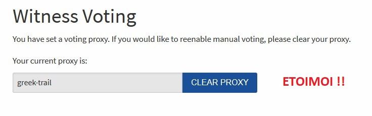 Να ψηφισεις ποιον ? Μαλλον δεν εχεις διαβασει το ποστ φιλε @trumpman ! Δεν ζηταμε να ψηφισεις το Greek-Trail για witness , αλλα να το βαλεις σαν Proxy voter , δλδ να ψηφιζει για λογαριασμο σου, τους witness που το προσφερουν τοσο στο community οσο και στην πλατφορμα !