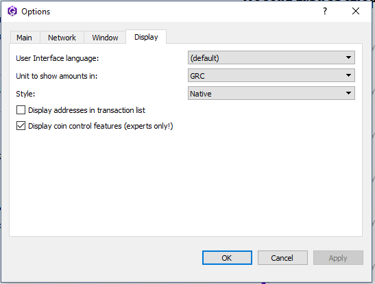 GRC Wallet Coin Weight vs Available