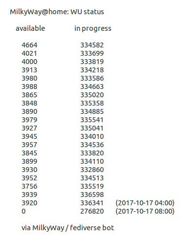Since at least 2h, the BOINC project MilkyWay@home does not give out new WUs :-(