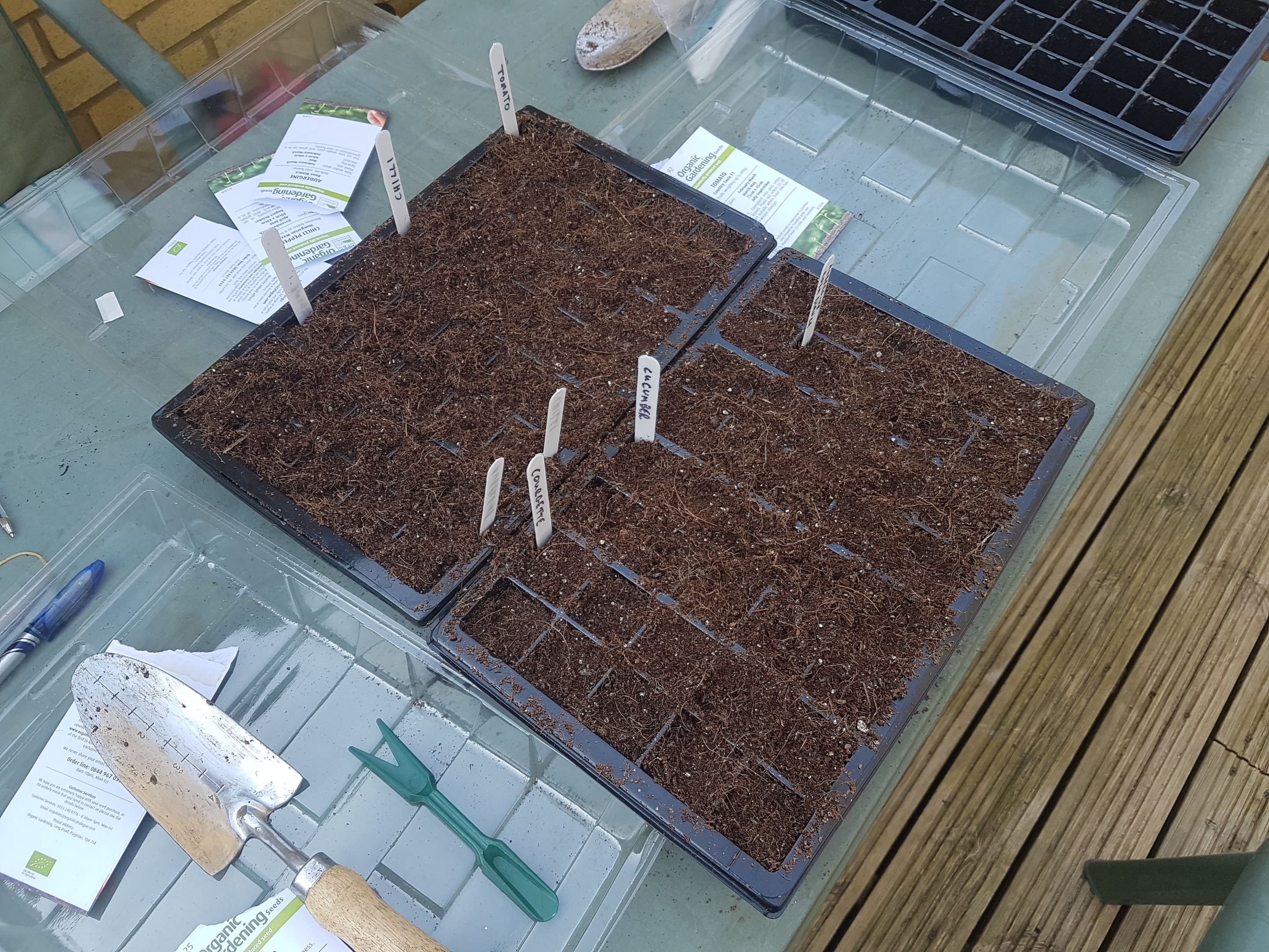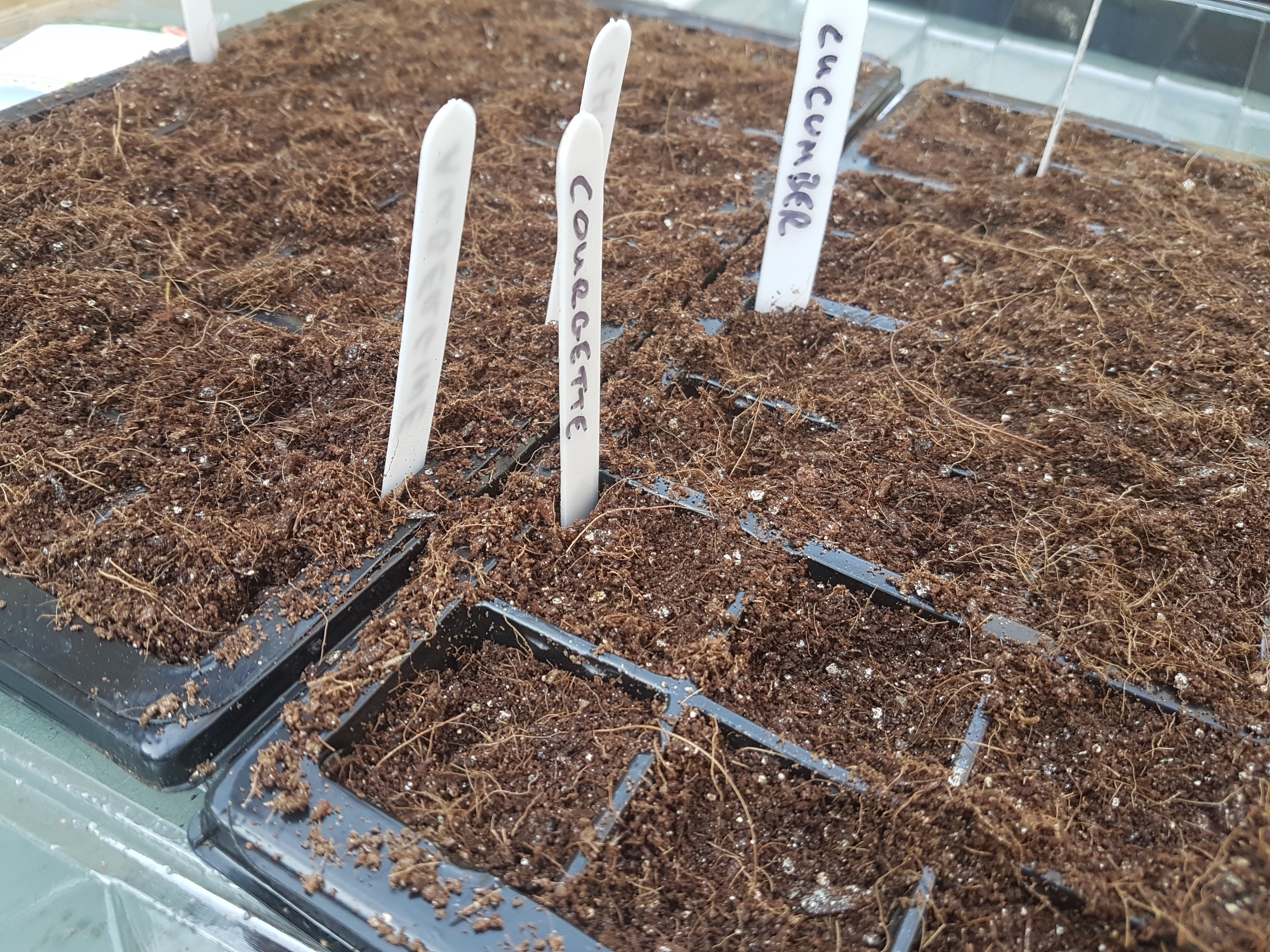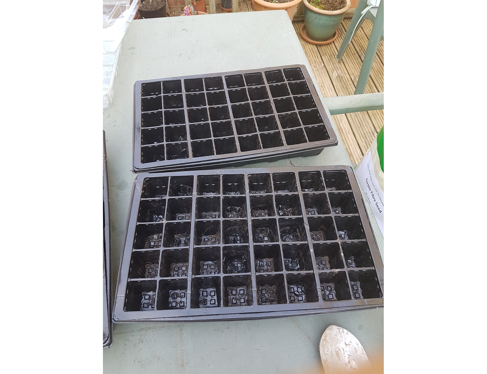 We used the same trays as last year, filling them up from the bag of Fertile Fibre Organic Seed Compost.