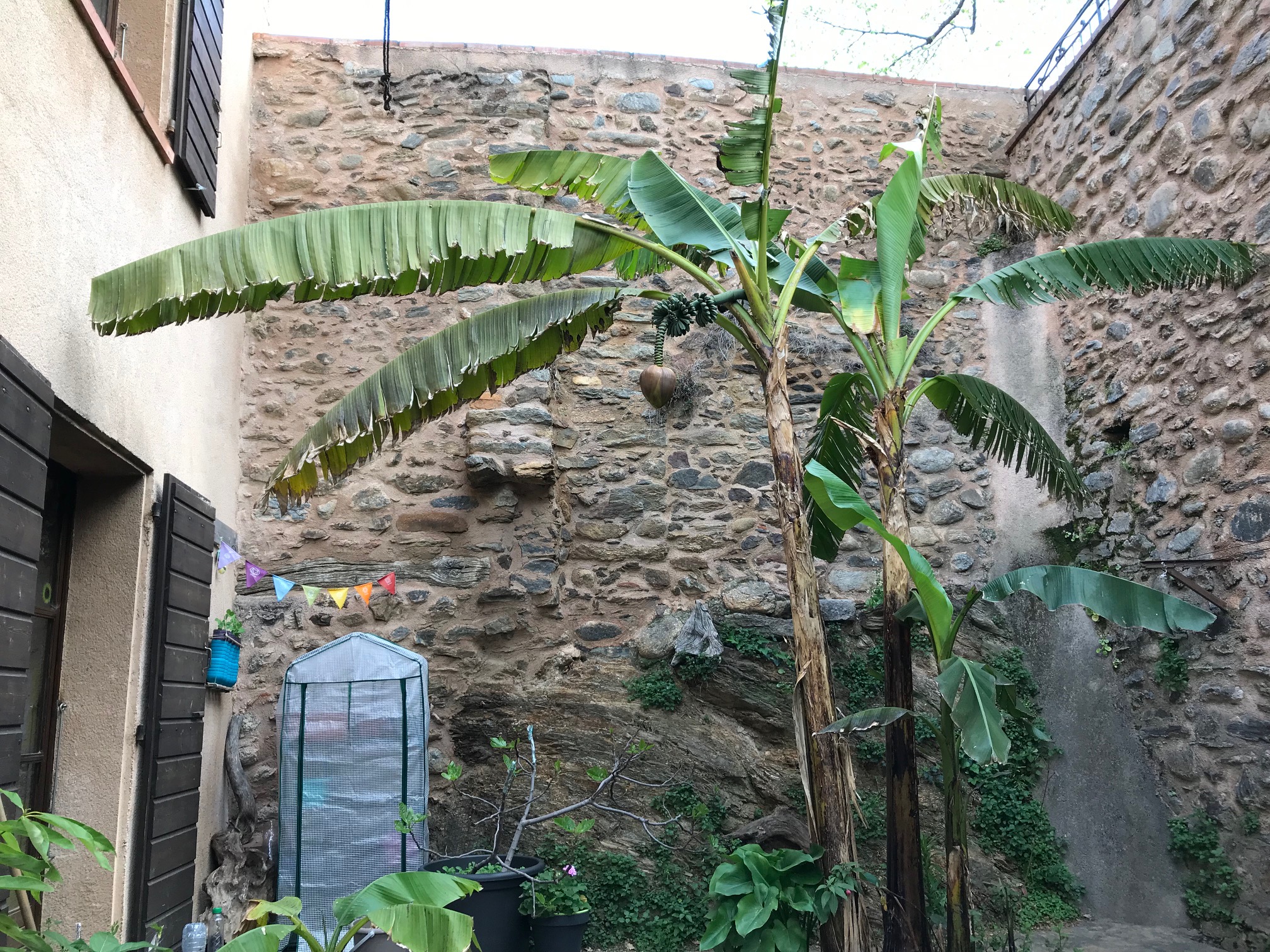 From my own experience I can see how our courtyard extends the growing season because our small potted fig tree already has leaves while the ones in our garden don't. And you can be sure we would not be growing bananas if it were not for the great stone walls which surround them.