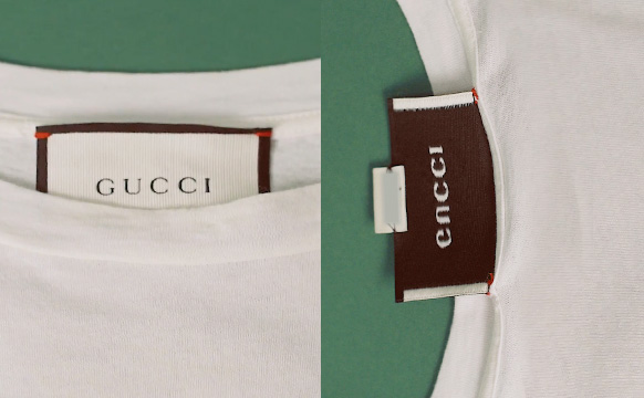 If a Gucci T-shirt does feature appliqués, pay close attention to the details. “Make sure they are finely detailed and sewn to the shirt with matching thread,” says Wetzbarger. “Iron-ons, glue or invisible thread are signs of a fake.”