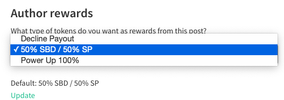 - What does the Rewards: 50% SBD / 50% SP mean?