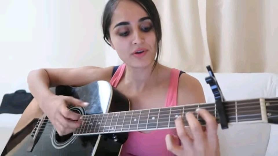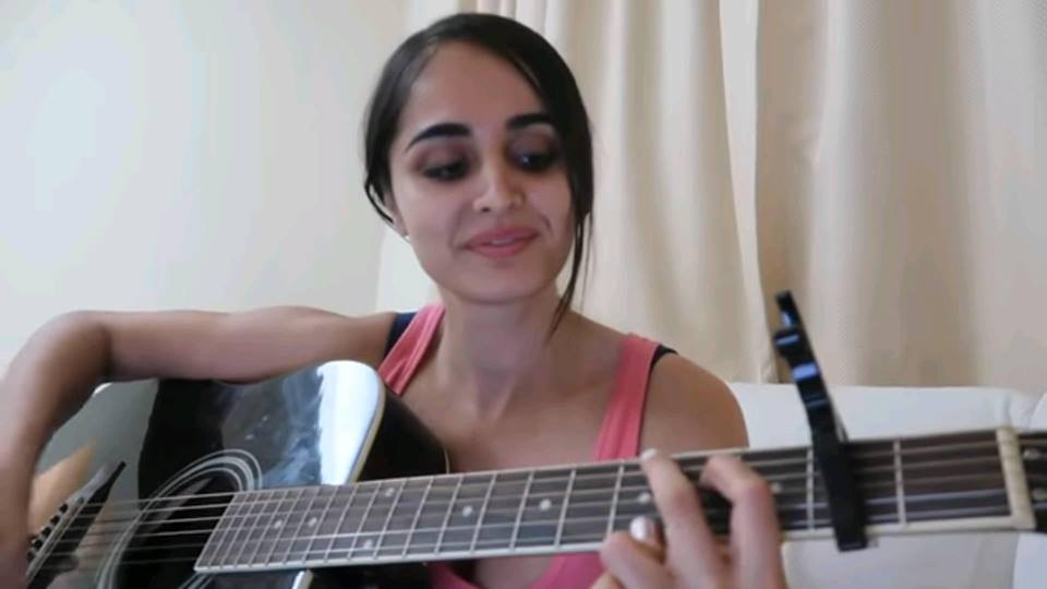 Check out her latest post, in which she has #guitar (#musicalinstrument) in her hand while sining. I really liked her smile a lot... :)