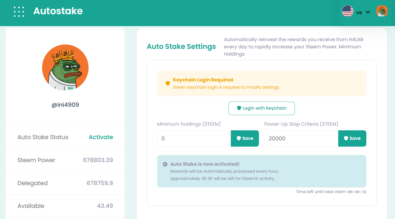 - Seamless power-ups: Extra STEEM is auto-powered up after every cycle.