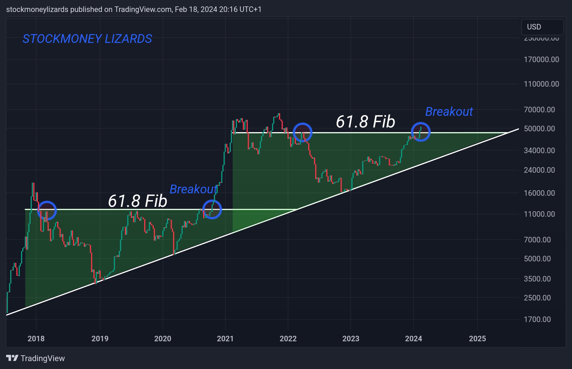 Take a look at the BTC(Bitcoin) chart 🧐 There are the Fibonacci resistance lines. When the BTC price broke the 61.8 Fibonacci resistance line, the BTC started the huge bullish market. Now, the BTC price just broke the 61.8 Fibonacci resistance line. It looks like a positive signal for the crypto market. Interesting 😲