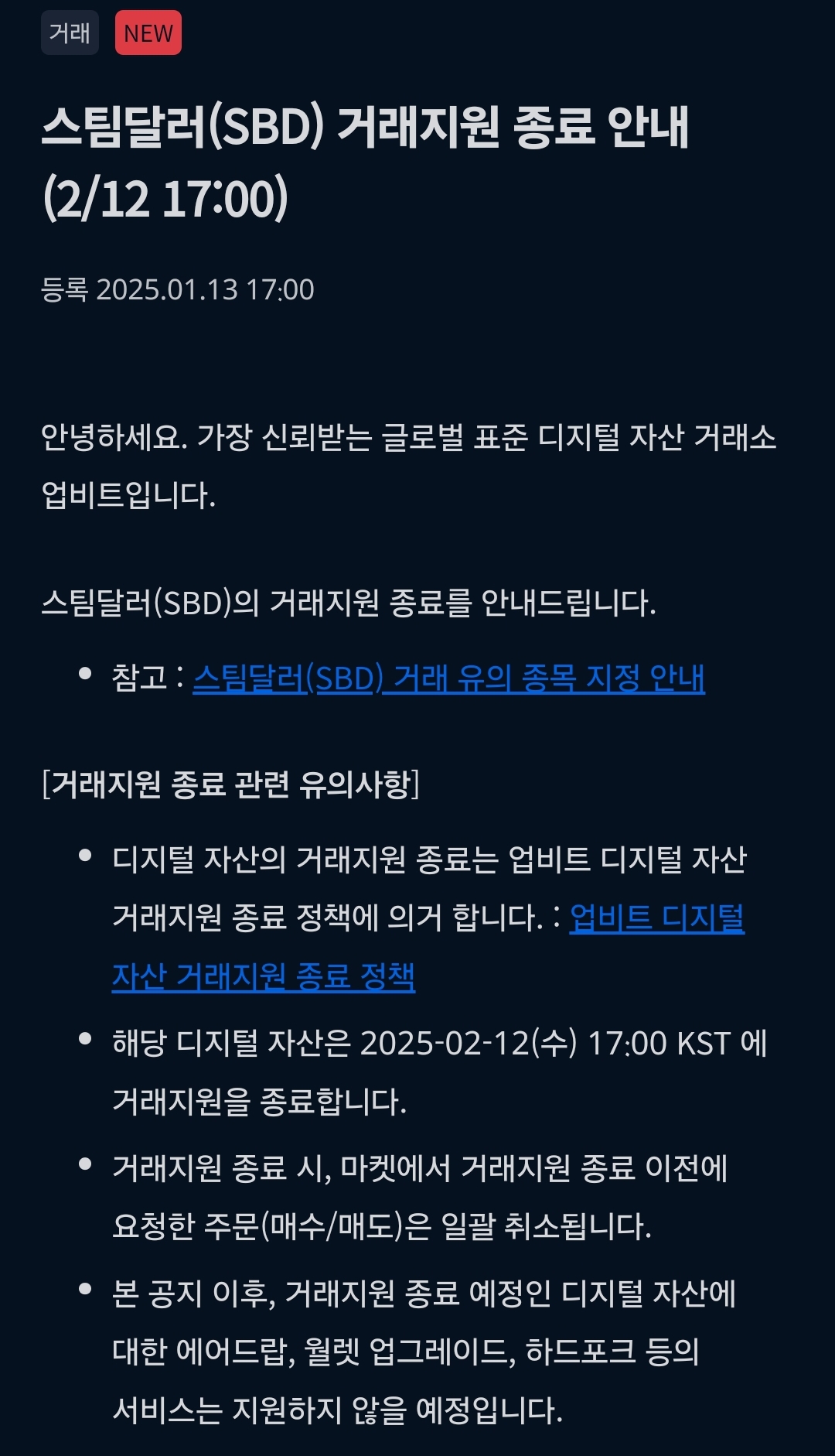 Unfortunately, Upbit decided to delist SBD.
