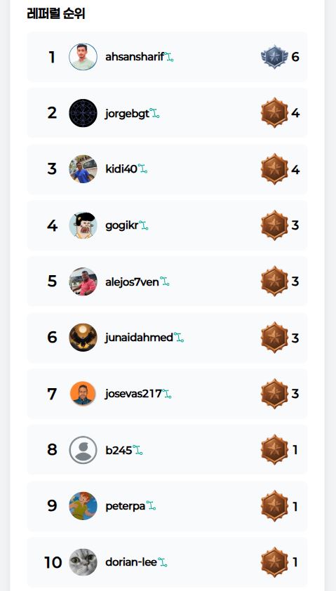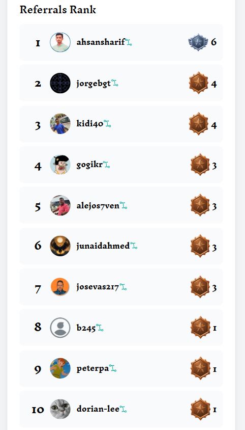 레퍼럴 갯수가 동일한 유저분들은 선착순으로 우선순위를 정했습니다.