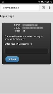 After connecting to the network, I got a notification saying I needed to access the wireless network. When you click on it, I found this page. For some people, you'll need to open your browser and try opening a website (it's possible to be google.com) to view this page. After entering the password, and then pressing Send, the script is run.