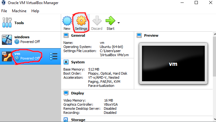 First we'll set up the vulnerable machine adapter. We do this by selecting the mrRobot VM(labeled simply vm in this case) and clicking Settings.
