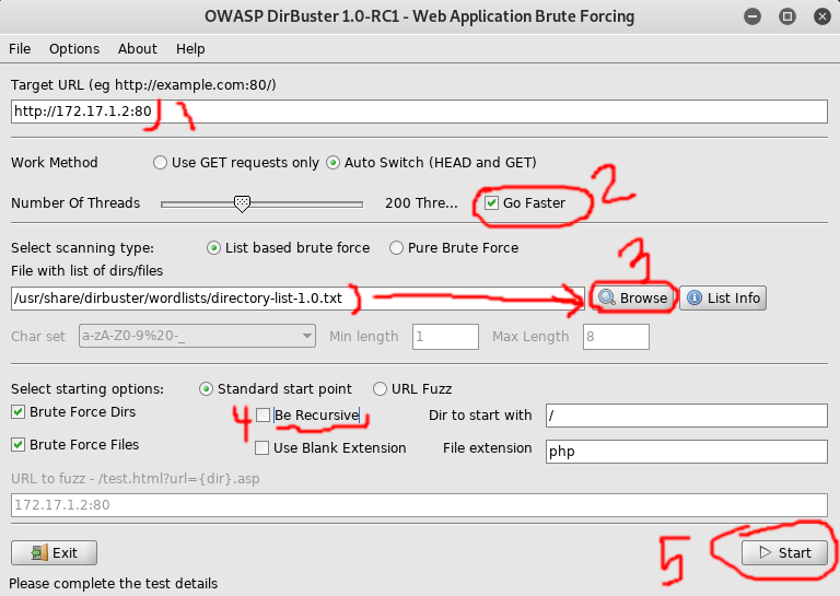 Now we want to find any hidden directories or files. Doing so can reveal login pages or insecure pages we can later exploit. We do this by using dirbuster. Simply type in the terminal: