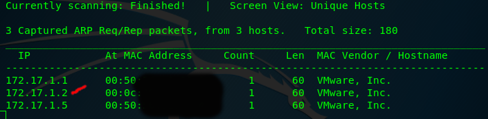 Now it's time to actually find the IP address of the MrRobot machine. We do this by using a tool called netdiscover. In the above example we saw that our network IP address was 172.17.1.1. This number may be different depending on your settings. When using net discover we simply change the last series of numbers of it to 0/24(shown below). We simply go to a terminal and type: