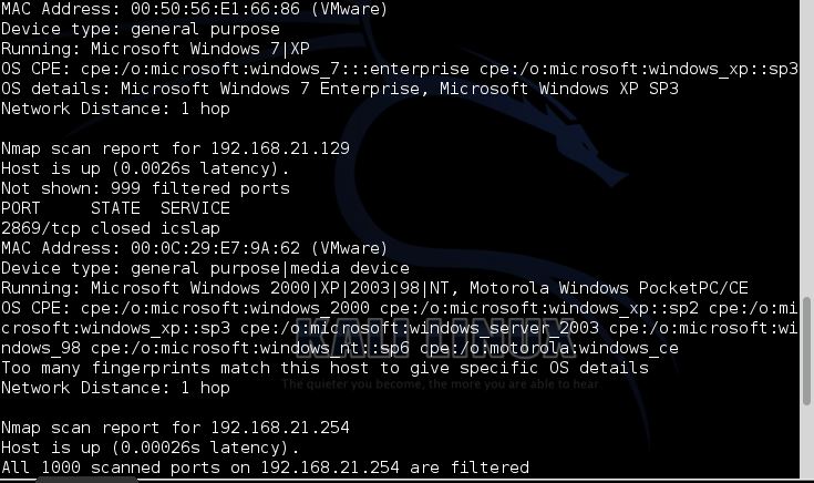 - Next Scan target for specific computers by using the nmap switch by typing : nmap sS –O 192.168.21.2/24 and click “Enter” as showed below: