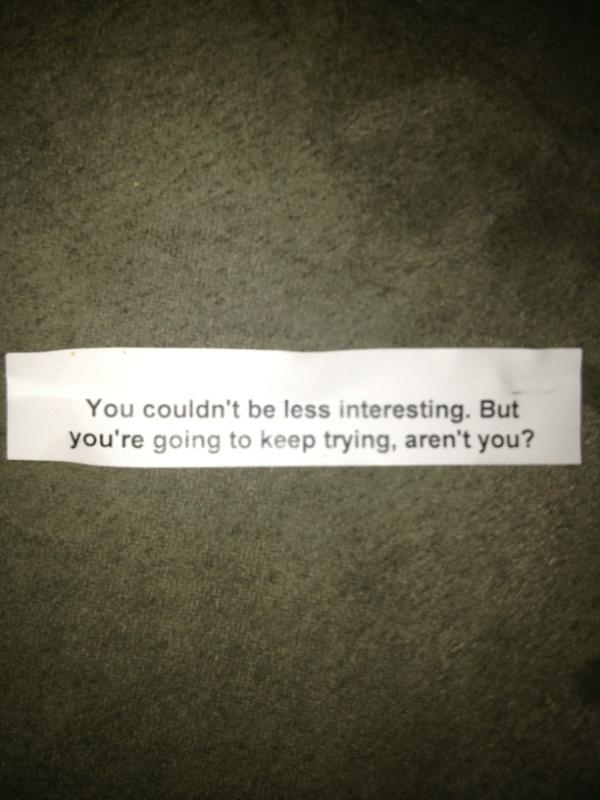 Fortune cookies don't always give the best adviceillimattic (5)in #haha • 9 years ago It's not always wise to listen to suggestions hidden inside a sugar cookie. #funny #fortunecookie #life #advice