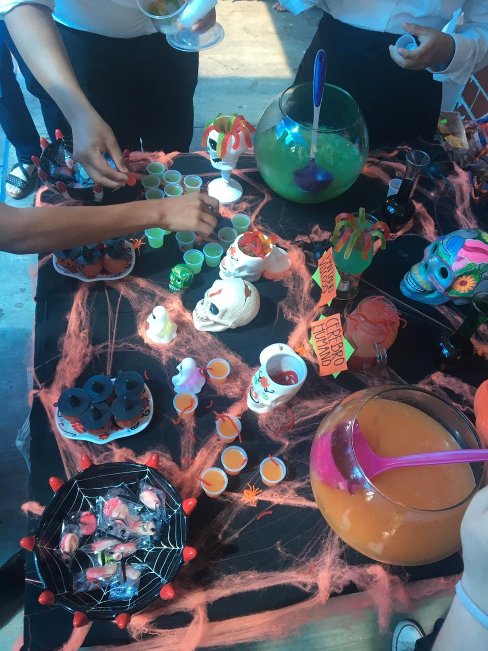 Me gusto mucho como quedo mi mesa ya que colocamos las cosas que mas llaman la atencion en Halloween .