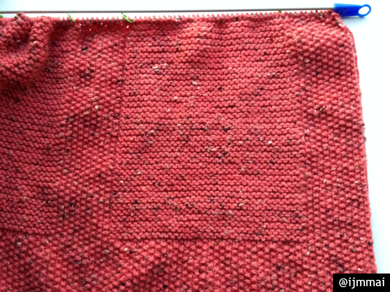 Then it became sort of the same, but without the horizontal lines. Knitted it all up to the height of 70 cm and decided, it was no good. The part knitted in knit stitch was just too fluffy, too bulky, you could not flatten the blanket. Time to start over.