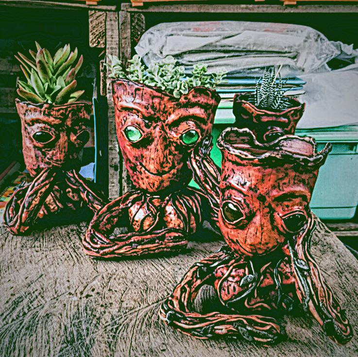 This succulent pot is very unique. A very attractive creation that makes us stop, smile and gaze at its beauty. Isn't it wonderful? It is made up of a stone and synthetic clay.