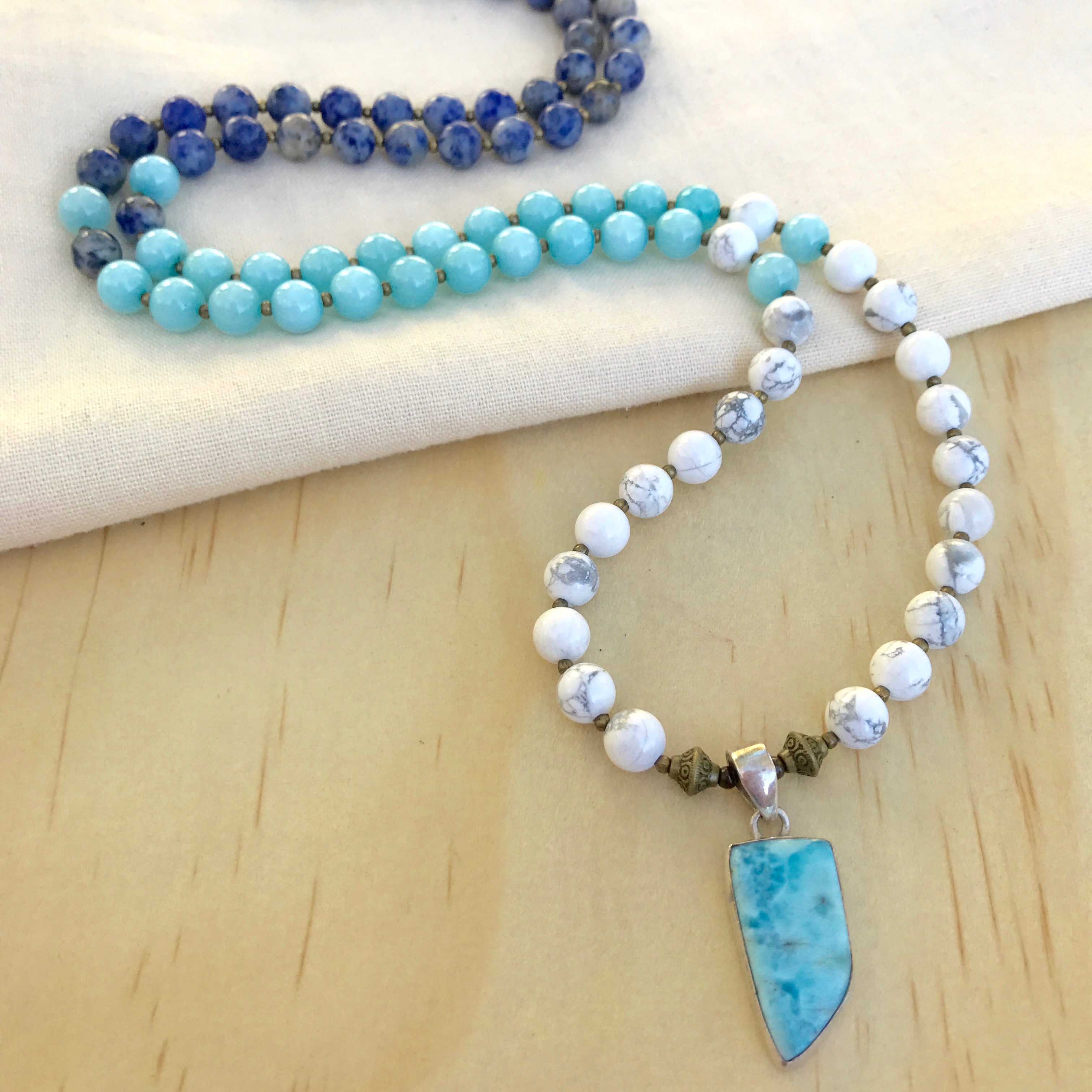 SODALITE (The dark blue crystal at the top of the necklace): Brings order and calmness to the mind.