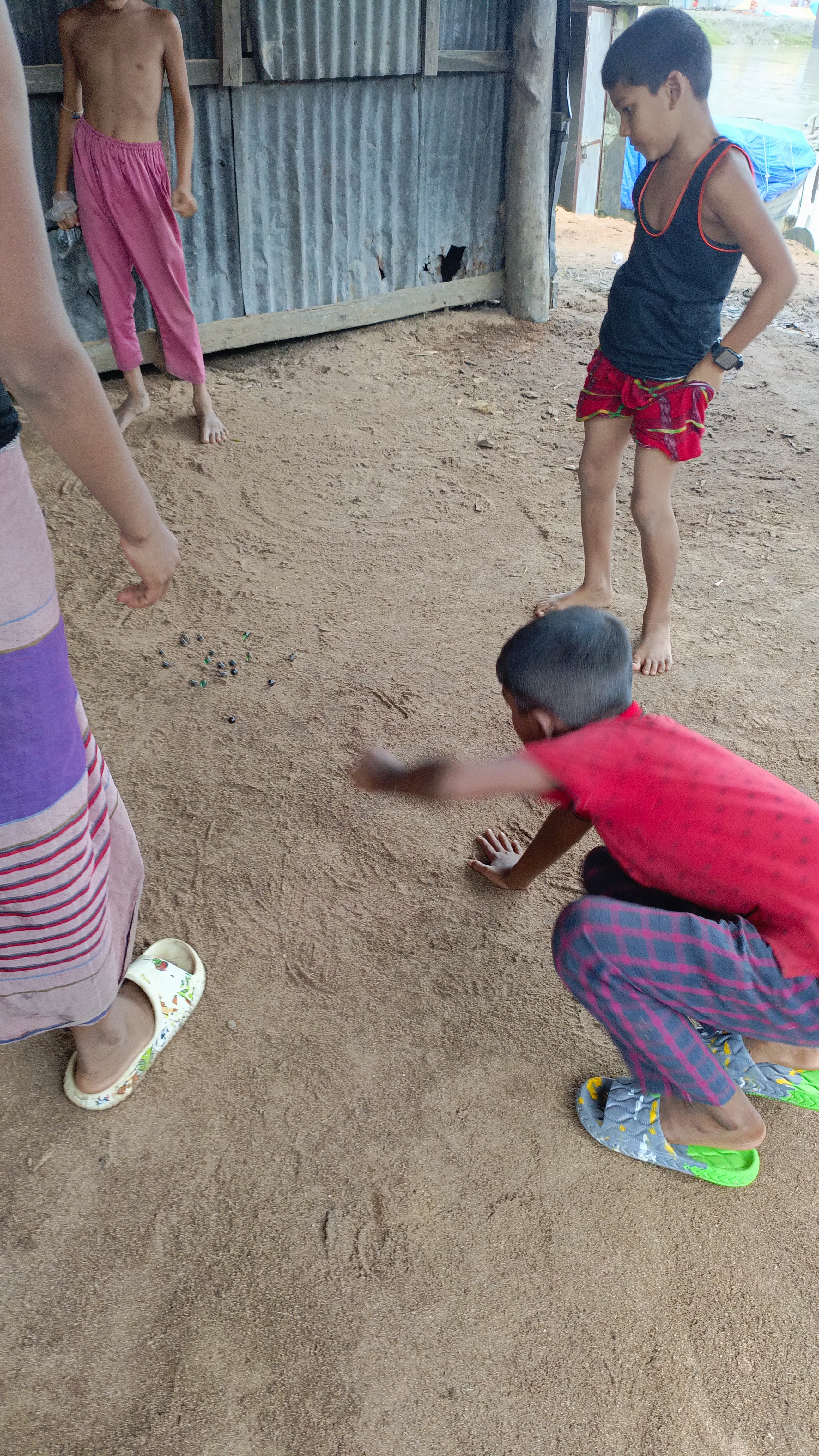 প্রথম খেলোয়াড় হিসেবে আমি মারবেলগুলো সজোরে ছুঁড়ে দিতাম, যাতে সেগুলো ছিটকে গর্ত থেকে দূরে চলে যায়। যখন মারবেলগুলো ছিটকে পড়ত, তখন আমাদের লক্ষ্য হতো নির্দিষ্ট একটি মারবেল ছুঁড়তে। কিন্তু যদি কোনো খেলোয়াড় সেই মারবেলে আঘাত করতে না পারতো, তবে তাকে খেলায় হারতে হতো এবং পরের খেলোয়াড় সুযোগ পেত। মারবেলের রঙিন গোলকগুলোকে লক্ষ্য করে আমরা বারবার চেষ্টা করতাম সঠিকভাবে আঘাত করার। সেই মুহূর্তগুলোতে আমাদের সবার মাঝে উত্তেজনা বাড়তো, আর প্রতিযোগিতার আগুন যেনো আরো প্রজ্জ্বলিত হতো।