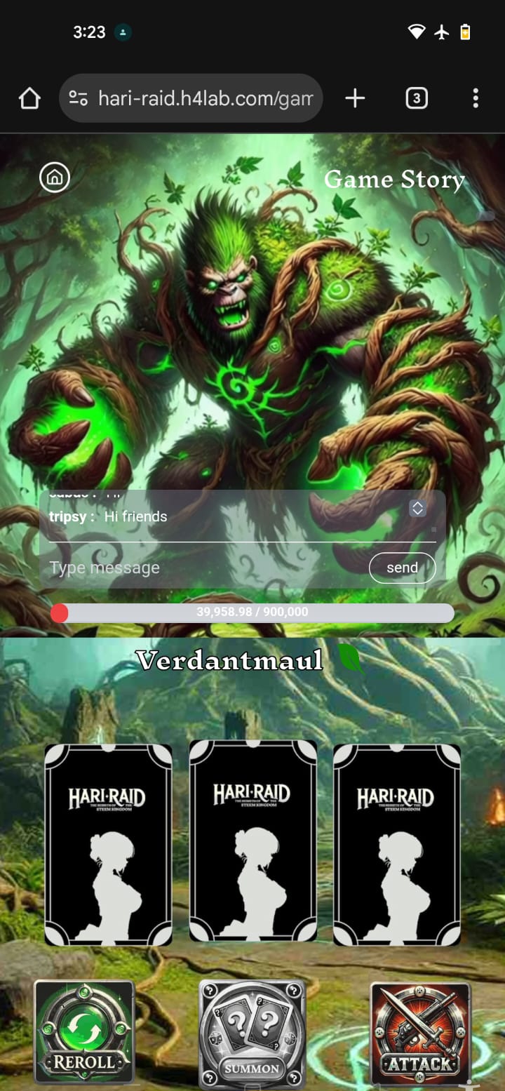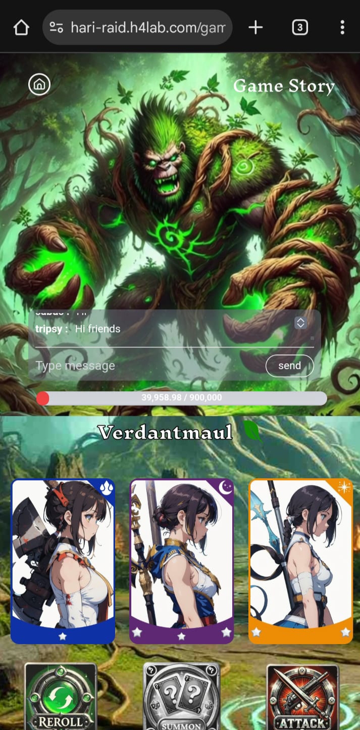 I played HARI RAID by summon up my 3 availabile cards of today.