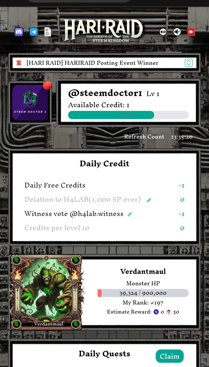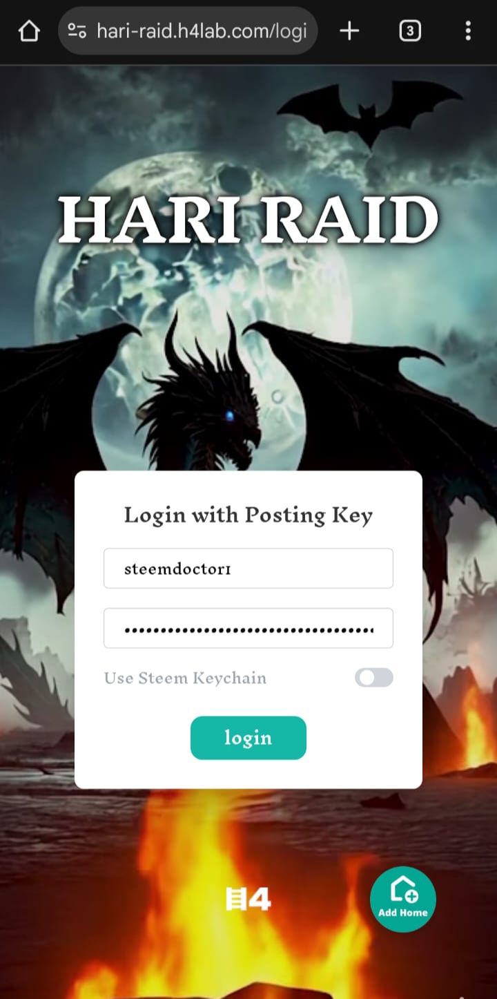 I copied my private posting key and use it to login in HARI RAID by adding my Steemit username steemdoctor1 and key and simply I am here at my homepage.
