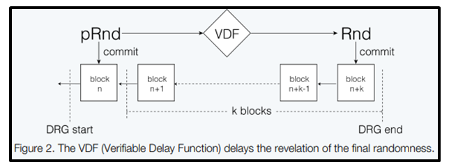 - Then by using VDF, the revealation of this final random number is delayed so as to prevent any attack and to make it more secure. VDF can prevent a malicious leader from biasing the randomness.