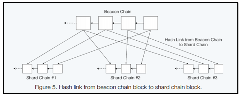 Furthermore, it is efficient and does not involve any complexity in network communication. In the composition of Beacon chain and Shard chain, the beacon chain broadcasts the block headers and the shard chains do not have to separately broadcast the block headers to all other shards. So the communication complexity is simplified from O(NxN) to O(N) in this arrangement of sharding.