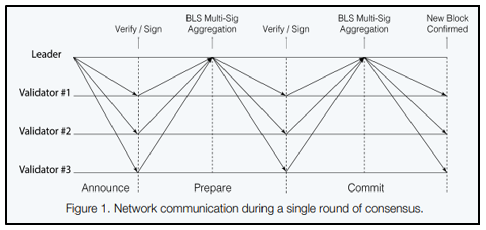 Furthermore, Harmony adopts BLS signature in stead of schnorr signature for multi-signature signing. In schnorr signature, it requires two round-trips for a single multi-signature where as in case of BLS signature, it requires only one round-trip. Therefore Harmony with FBFT & BLS signature speeds up the block broadcasting process.