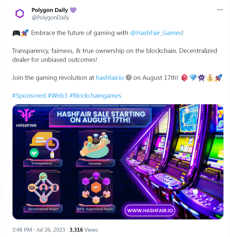 #Sponsored #Web3 #Blockchaingames #HashFair #BlockchainRevolution #HashFairDAO #Innovation #polygongaming #HFG #Polygon #SmartContracts #ProfitDistribution #polygonchain