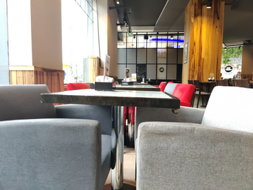 I can't say that I love going downtown. It is grim and more grimmer on a gray day.It was early so I had some time and I read the entire menu before ordering my old standby. It's called "coffee with milk and a side of media lunas." I like this as much as ever because it's the normal breakfast for this town.