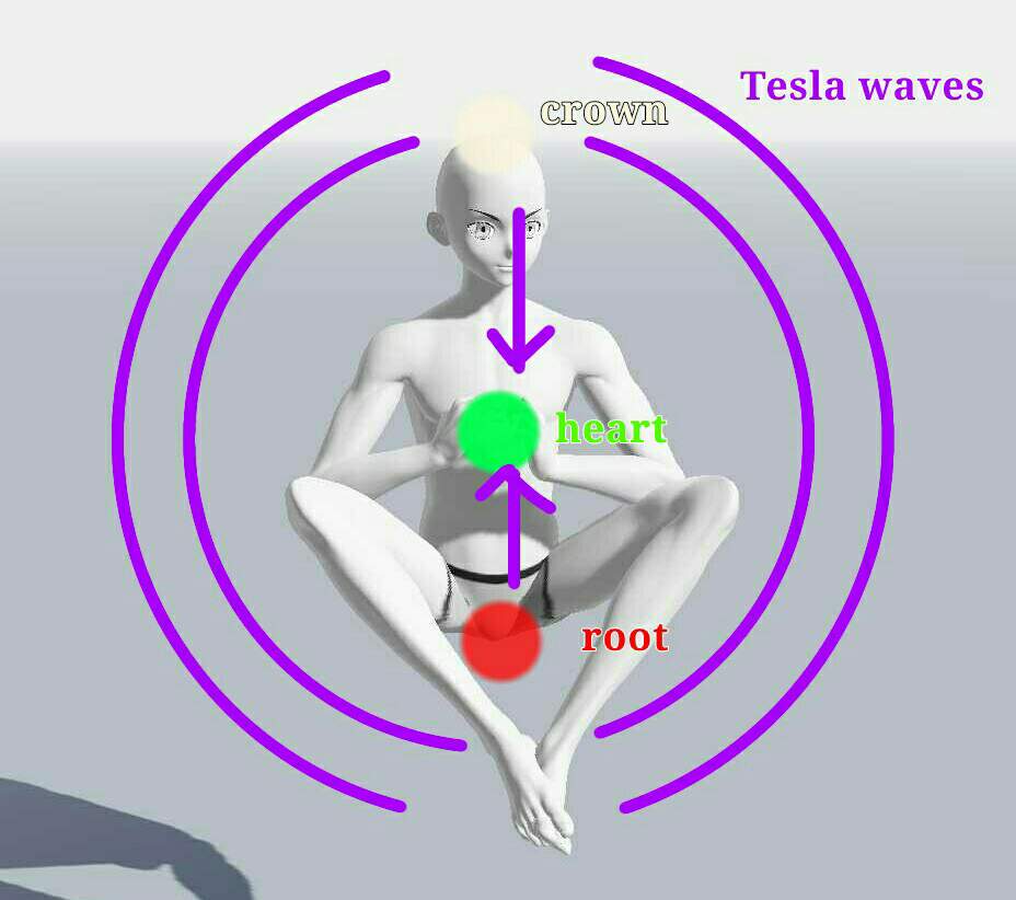 我认为骶骨和第三眼脉轮(或根冠和冠脉轮)就像两极。 彼此碰撞的部分(相互抵消的部分)是心脏的位置。