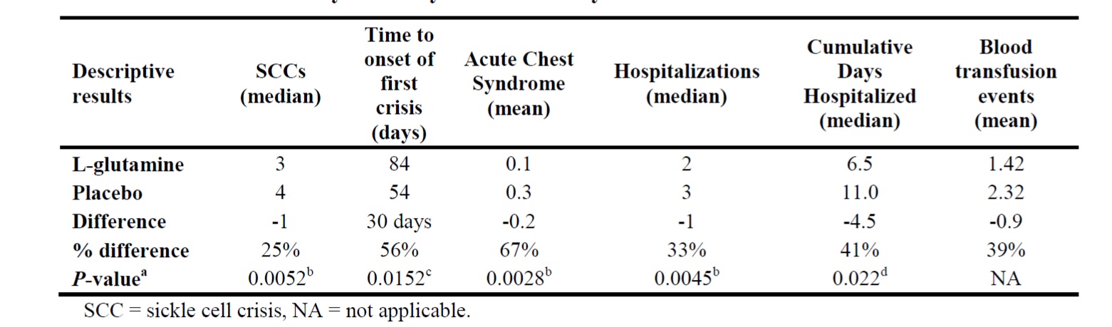 Clinical trials conducted using endari for 48 weeks showed reduced in frequency and length of hospital visit. One of the major complication, Acute chest pain has reduced by 67%.