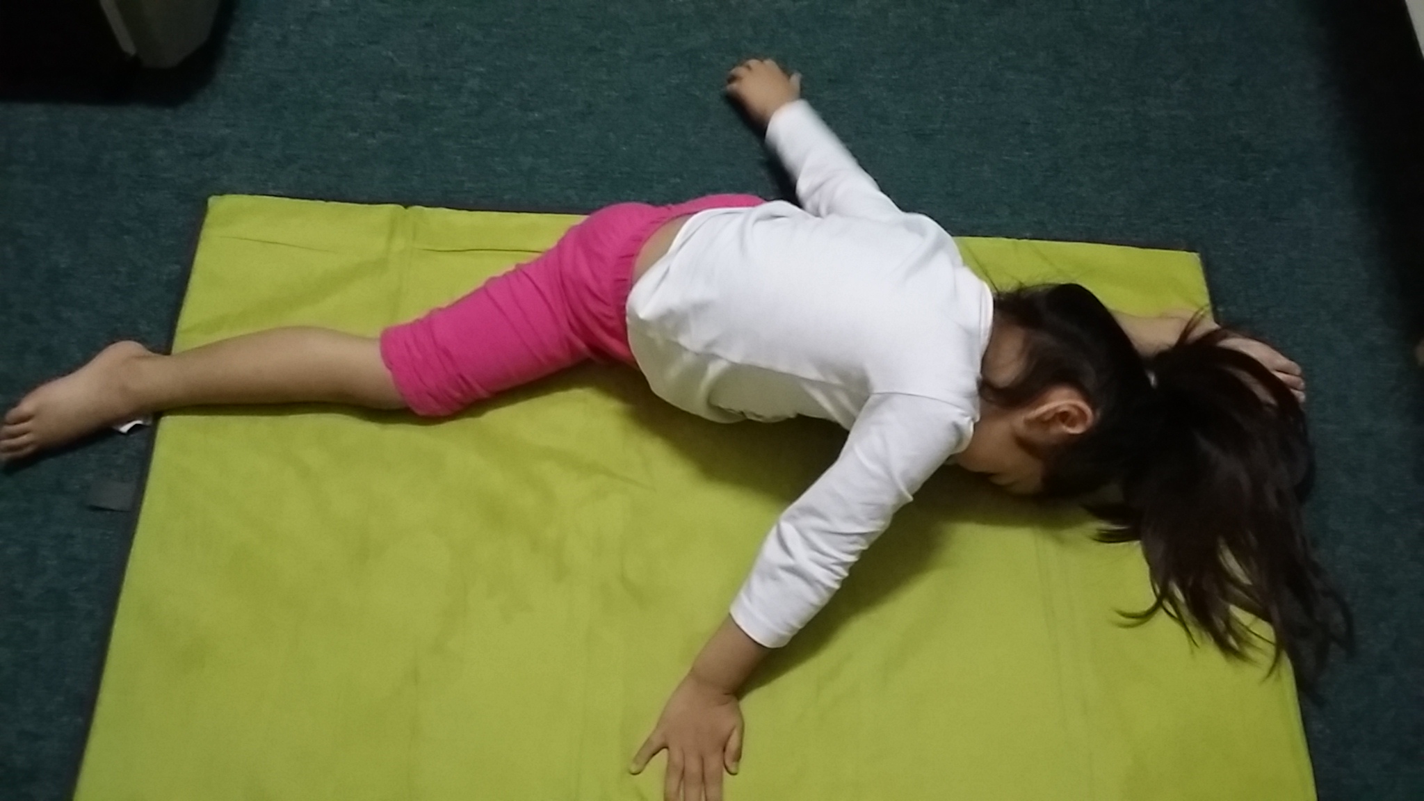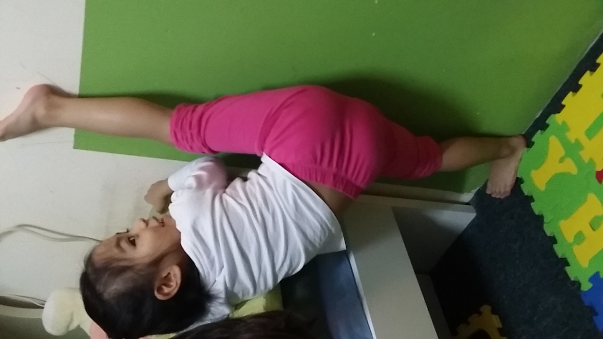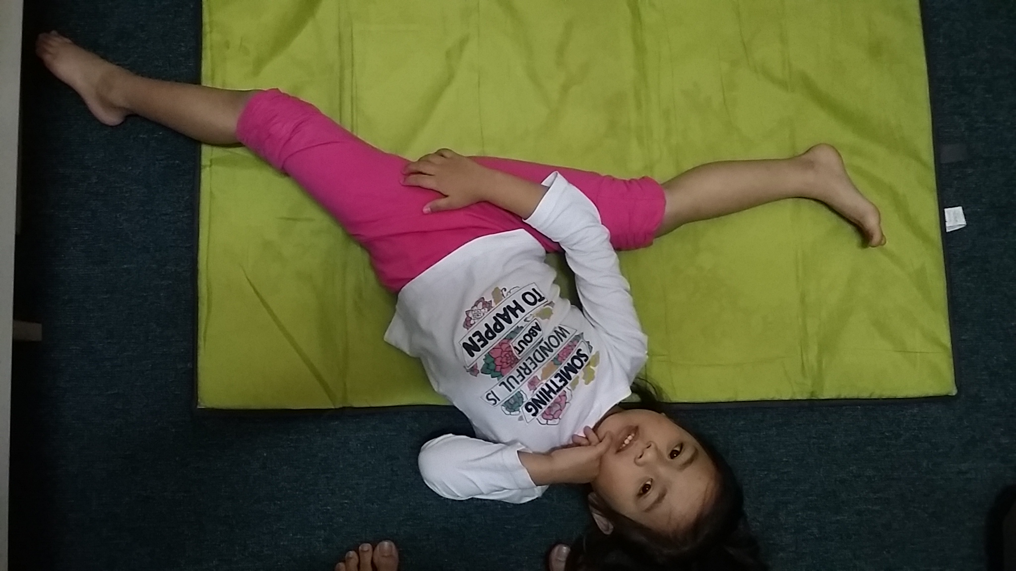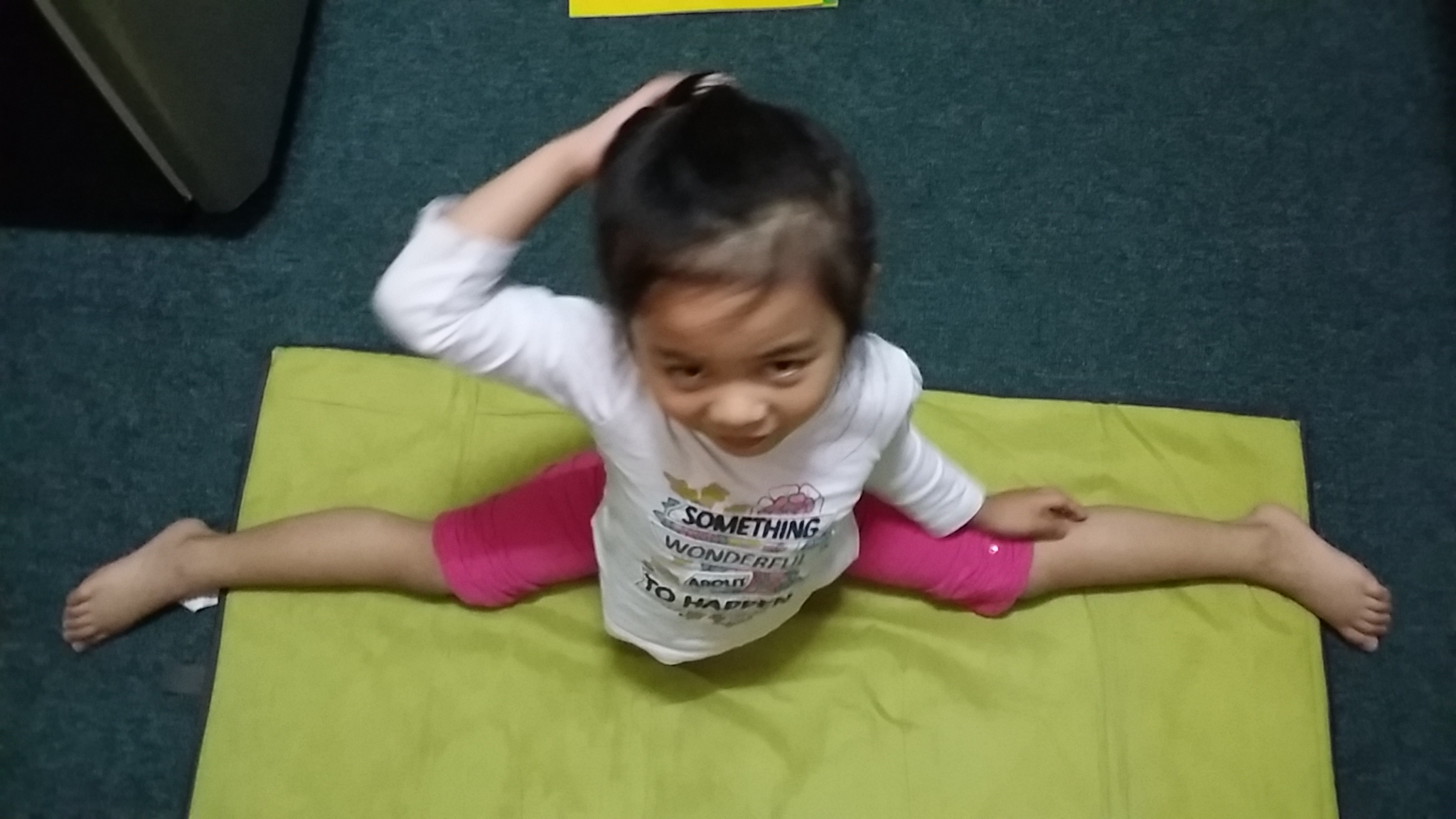 Stretching time! I love doing this. My ate Bella showed me this before and I have been doing it every day already. She calls it leg pressing. I am not really sure if that's how it is really called.