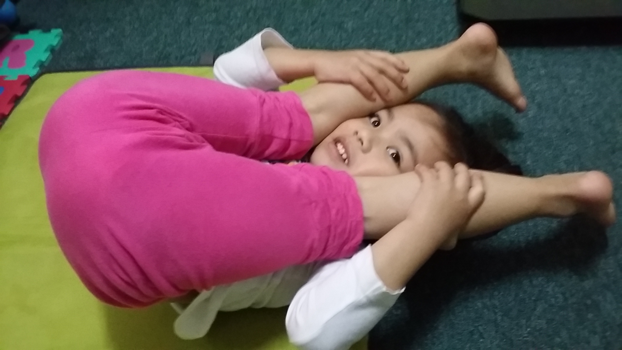 Can you stretch like this?! I know my mommy can't because she has a big belly. Ssshhhh! Don't tell her I told you huh?! And no. My Kuya can't anymore too. He said "he already lost his flexibility".