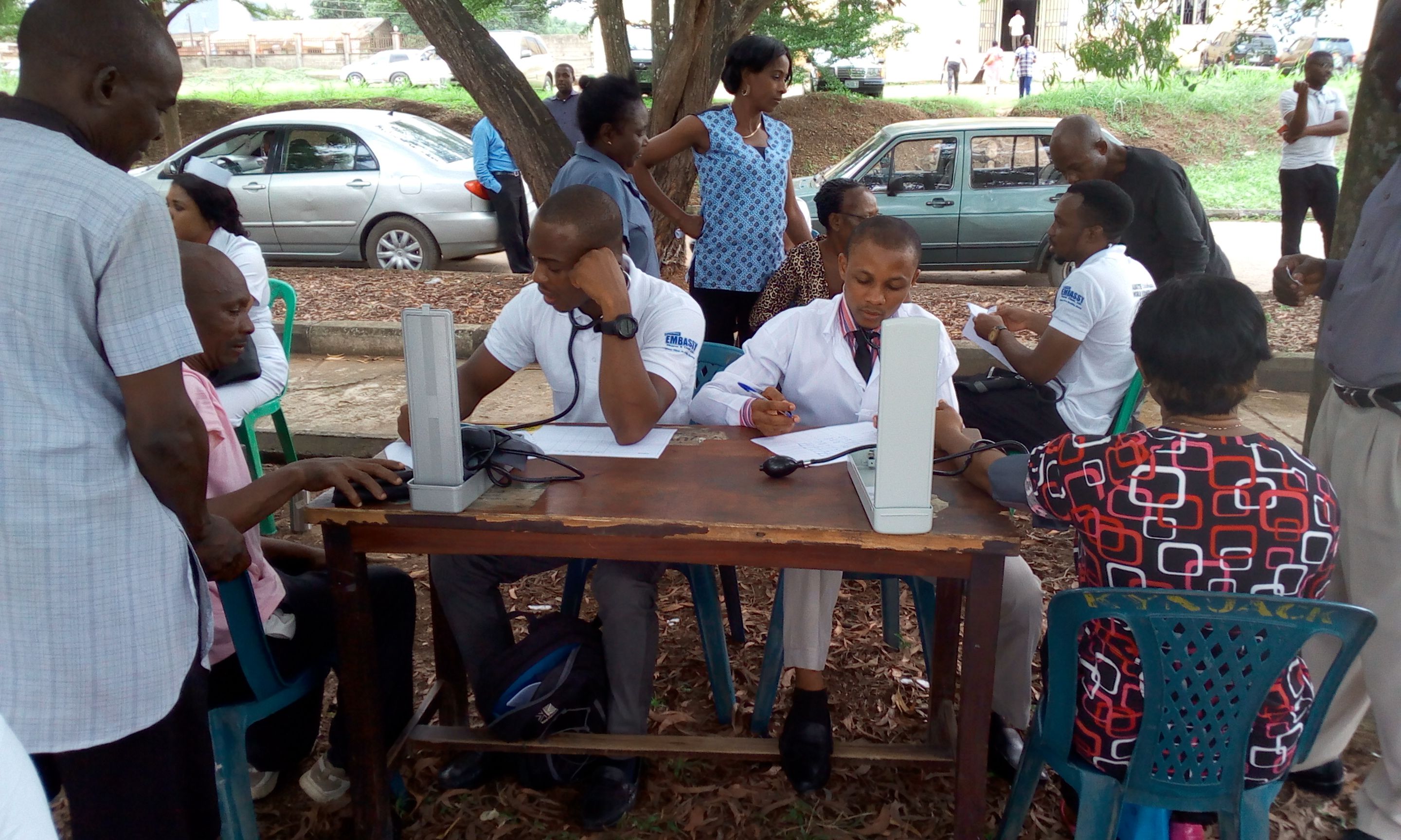 Finally we returned to the hospital premises where we conducted free vital signs check including blood pressure check also we carried out simple kidney function tests like urinalysis.