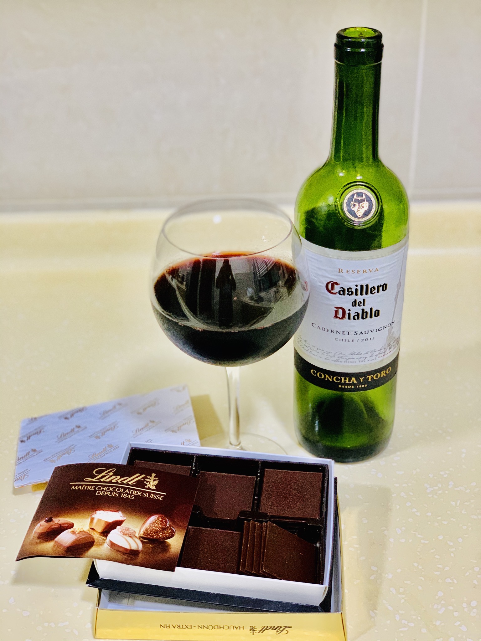 Red wine and chocolates are perfect combination.