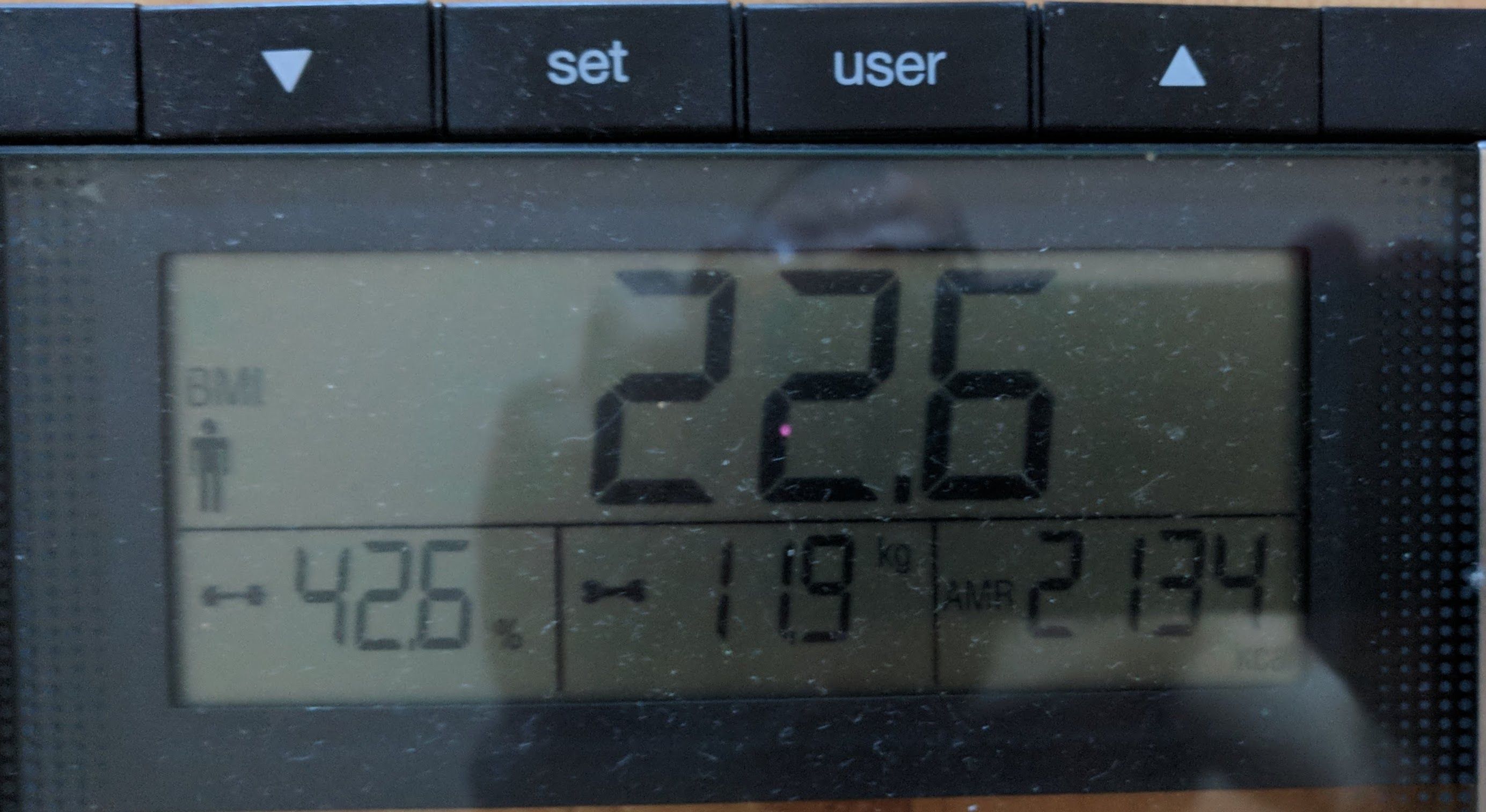 For January my focus will be to decrease body fat, hopefully below 20% and increase the amount of water in my body because only 55.7% is not so good.