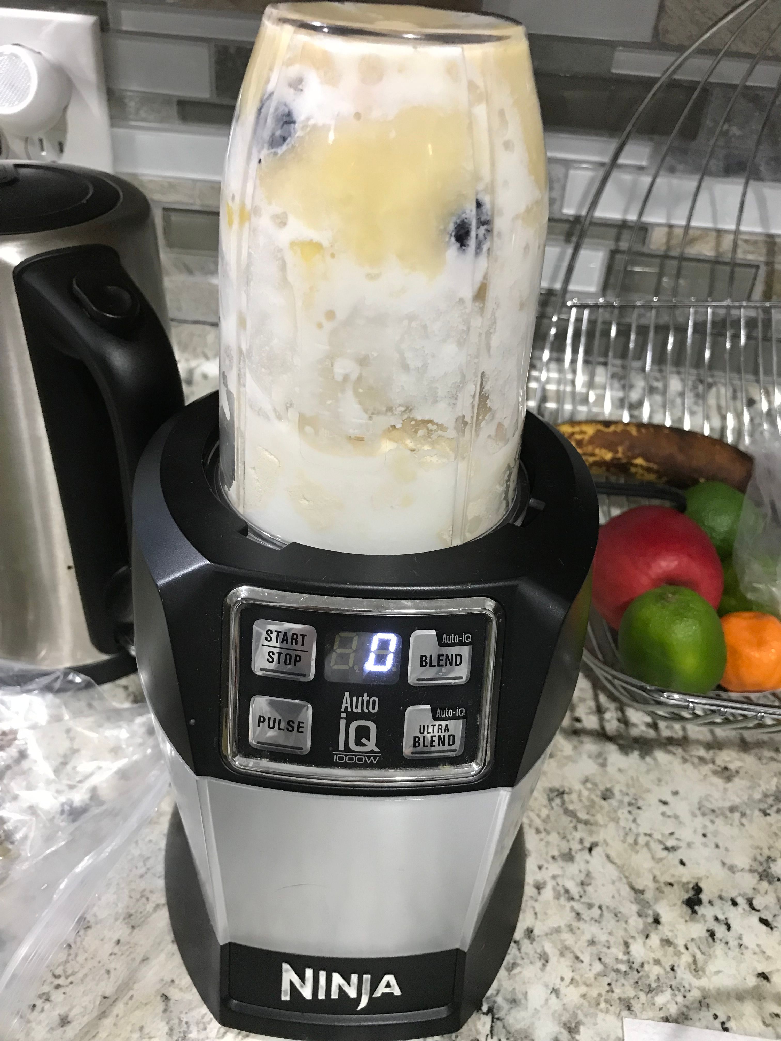 Doesn't it look delicious? I only have this for breakfast and then it keeps me full until I have lunch at noon. The only downside to making a smoothie is cleaning it up afterwards. The good thing about this system is that the cup is where I blend my smoothie so I really only need to wash the blade after.