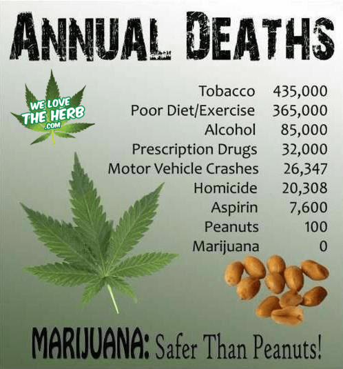 Cannabis can't result in an overdose. It's technically safer than peanuts!