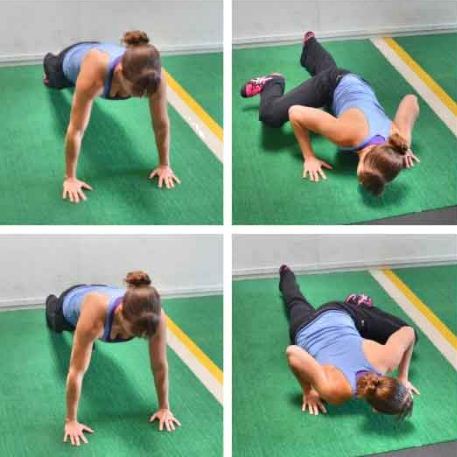 Push up this once a normal. Then touch the left shoulder with the right hand. Then again with the left hand, touch the right shoulder. Once it's done, keep doing it.