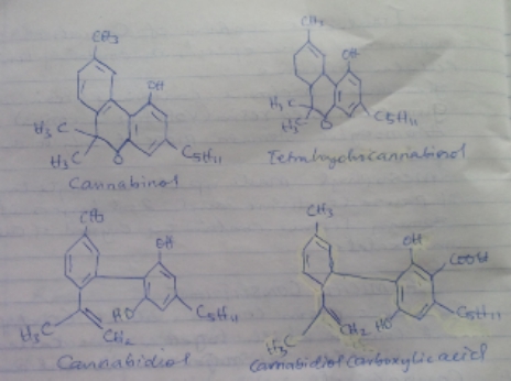 The crude drug contains about 60 differents compounds which together are called Cannabinoid. The major cannabinoid are;