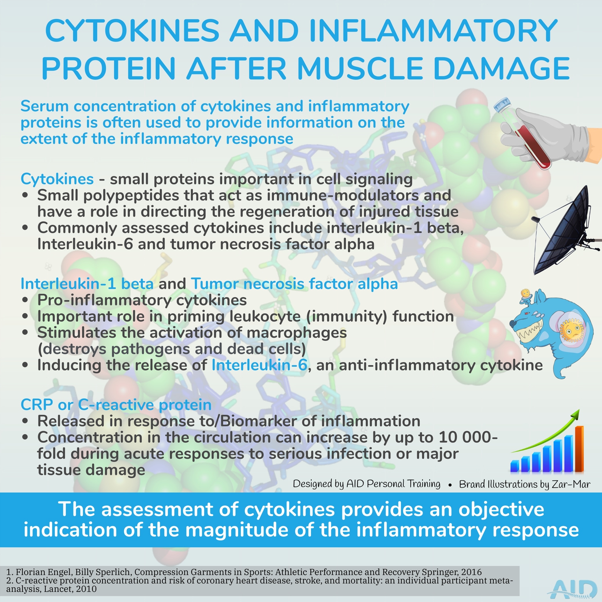Advanced topic. Ever wondered why researchers look into levels of cytokines and inflammatory protein when measuring post-exercise muscle damage?