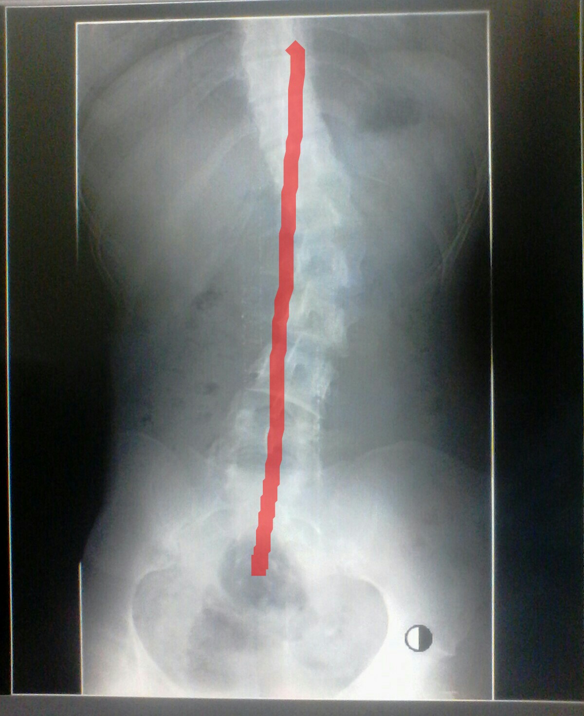 The Rx images of the dorsal and lumbar spine that can be observed are of a girl of approximately 20 years of age, which has a very serious thoracolumbar scoliosis for her age.