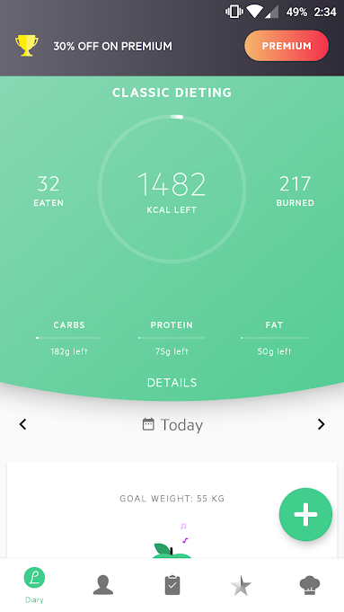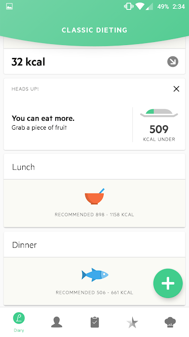 Once you input your goal weight and the app has all this data on you it creates a personalized limitation on your caloric intake, which may sound horrifying but is really not. Infact, you will see that you can eat a wide variety of stuff, you can even drink as long as you do it in moderation and keep it in your caloric limit.