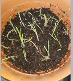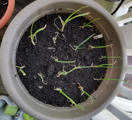 Next up is Onion's. I love Onions.. I have 3 18'' containers that I am currently using for these. I bought a pack of these starter bulbs really cheap and this is what they looked like before and after I planted them all!