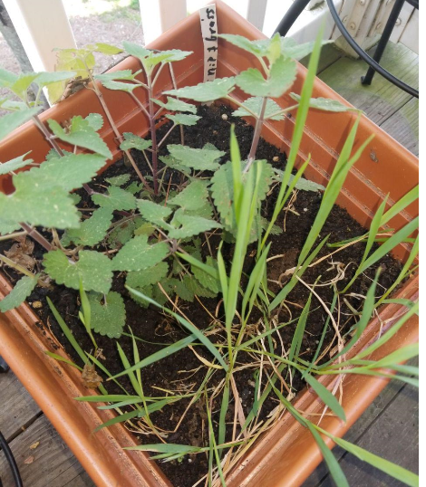 First up we have this leftover plant from last year. We have a cat named Arlo and he LOVES catnip and catgrass. These were both grown last year and will grow more this summer.
